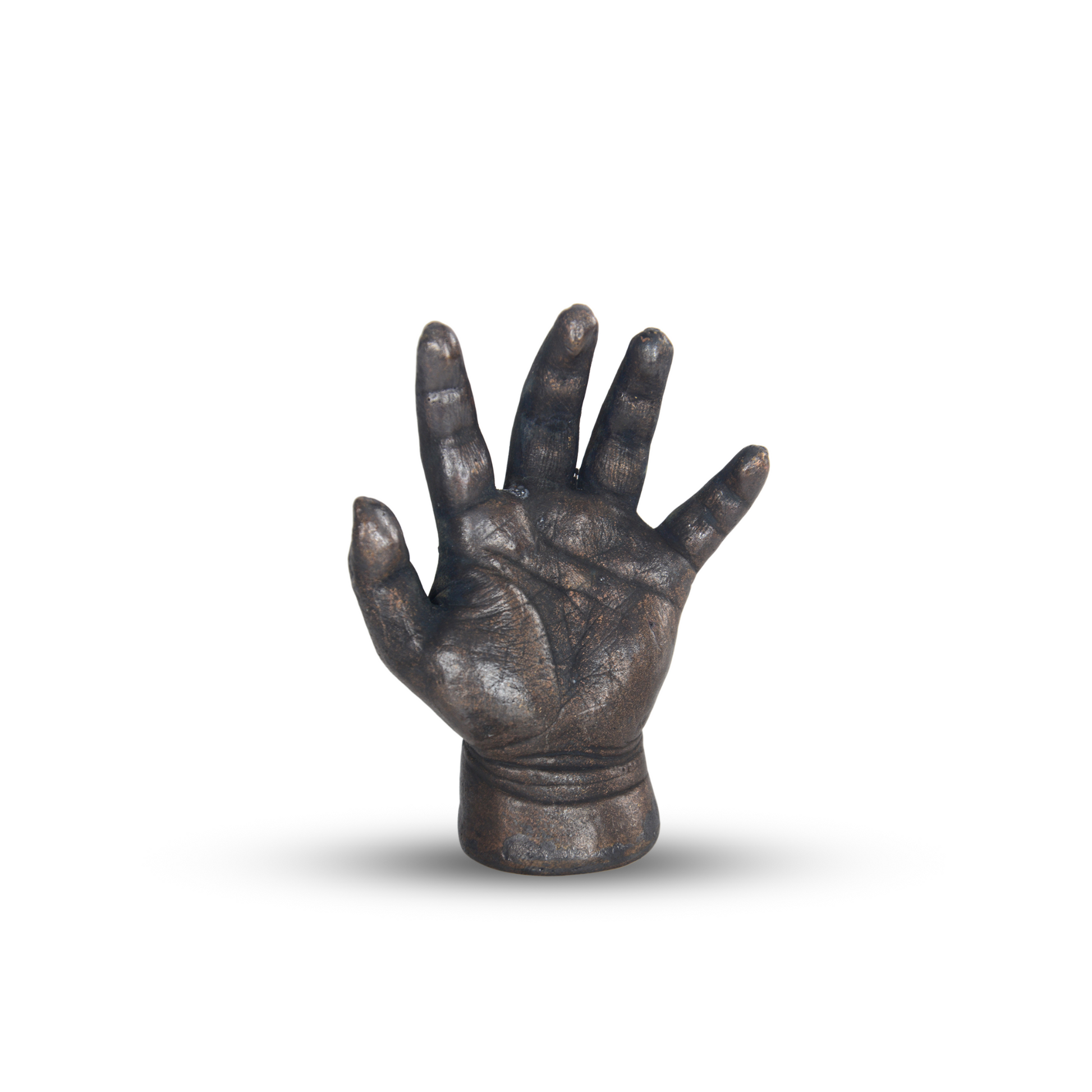 1 single statue cast of a baby’s hand or foot, made in solid bronze. Can be darkened or left as original light colour. The statue is meant for table-top display. A base and cover can be custom-made at extra charge. Size and cost will depend on size of statue. Price will be furnished only upon confirmation of size of cast. Casts will be completed 3 weeks after moulds are taken.