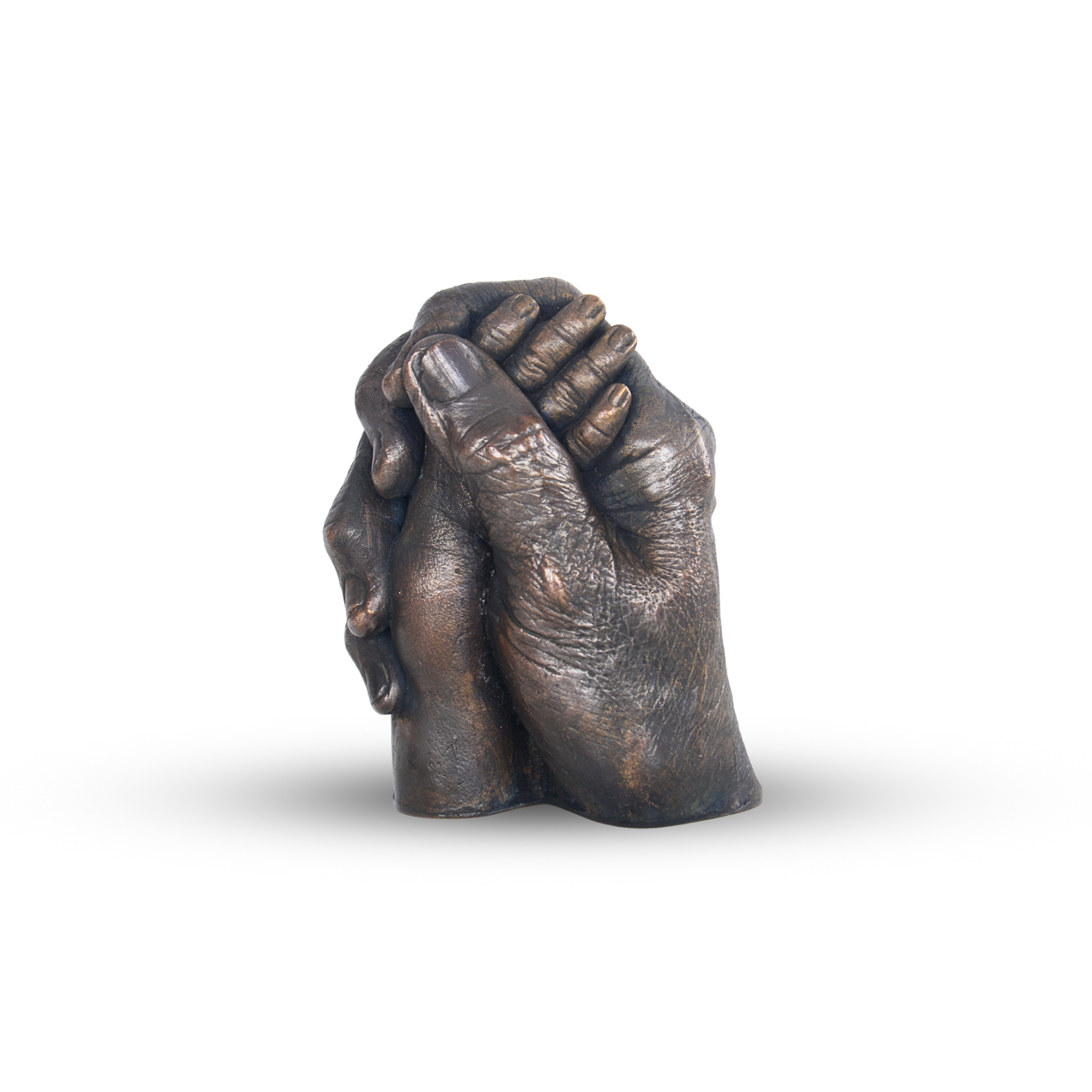 1 single statue cast of a parent’s hand holding a baby’s hand, made in solid bronze. Can be darkened or left as original light colour. The statue is meant for table-top display. A base and cover can be custom-made at extra charge. Size and cost will depend on size of statue. Price will be furnished only upon confirmation of size of cast. As foundry for bronze casting is located outside of Singapore, bronze casts will be ready only after 3 months.